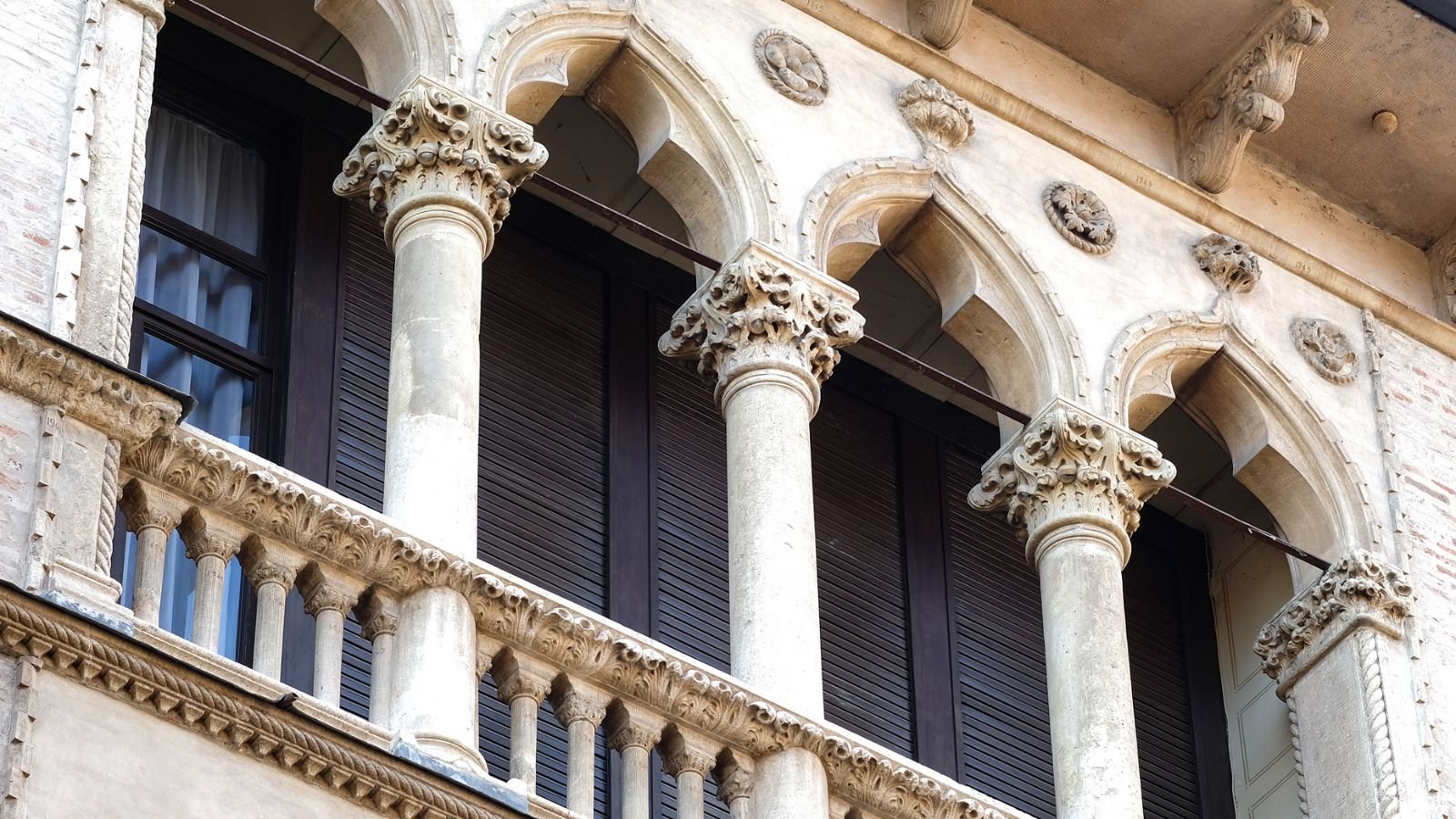facade: the elegant façade in Venetian Gothic style, once completely frescoed and decorated with gold leaf, which earned it the nickname Ca’ d’Oro, the golden house.
